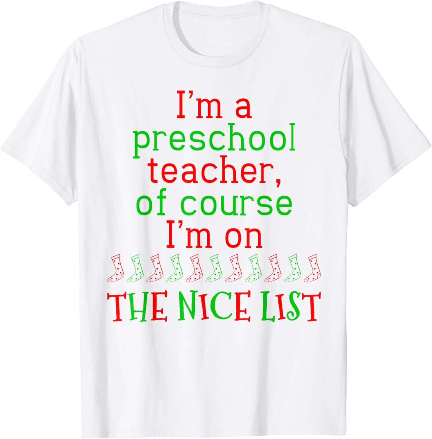 Amazon Com Preschool Teacher Christmas Gift T Shirt Santa S Nice List Clothing Shoes Jewelry